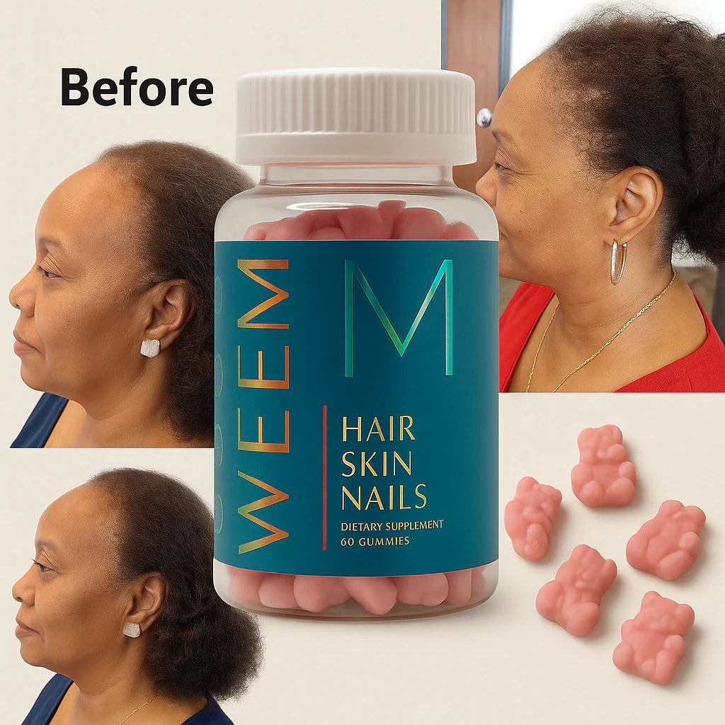 Amina’s edges were completely gone from years of tight braids and weaves, leaving her too embarrassed to pull her hair back, take photos from the side, or even rock a simple ponytail like before; she felt like her confidence disappeared with her hairline. After using WEEM Hair Growth Gummies consistently, her edges have grown back thick, even, and healthy — and she finally feels beautiful wearing her hair any way she wants again