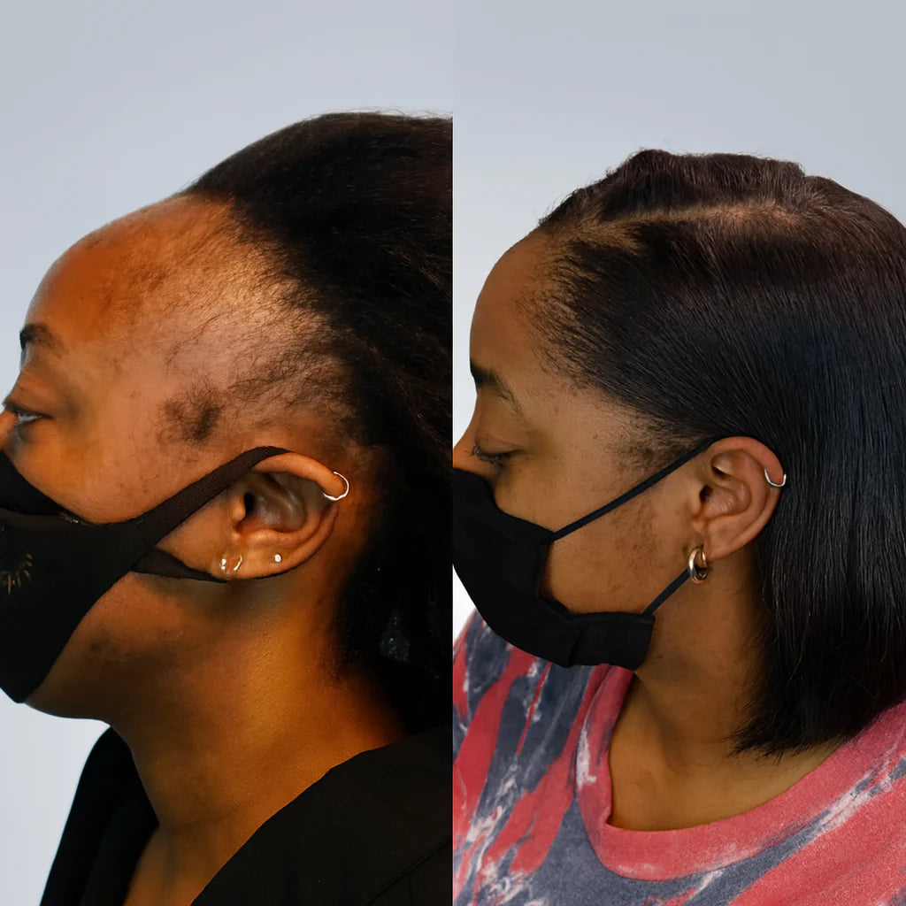 “My edges were almost gone and my hairline kept moving back. I tried so many oils but nothing helped. After a few weeks on WEEM, I started seeing small baby hairs growing again. Now my edges are filling in and my hairline looks much better. I feel so happy”